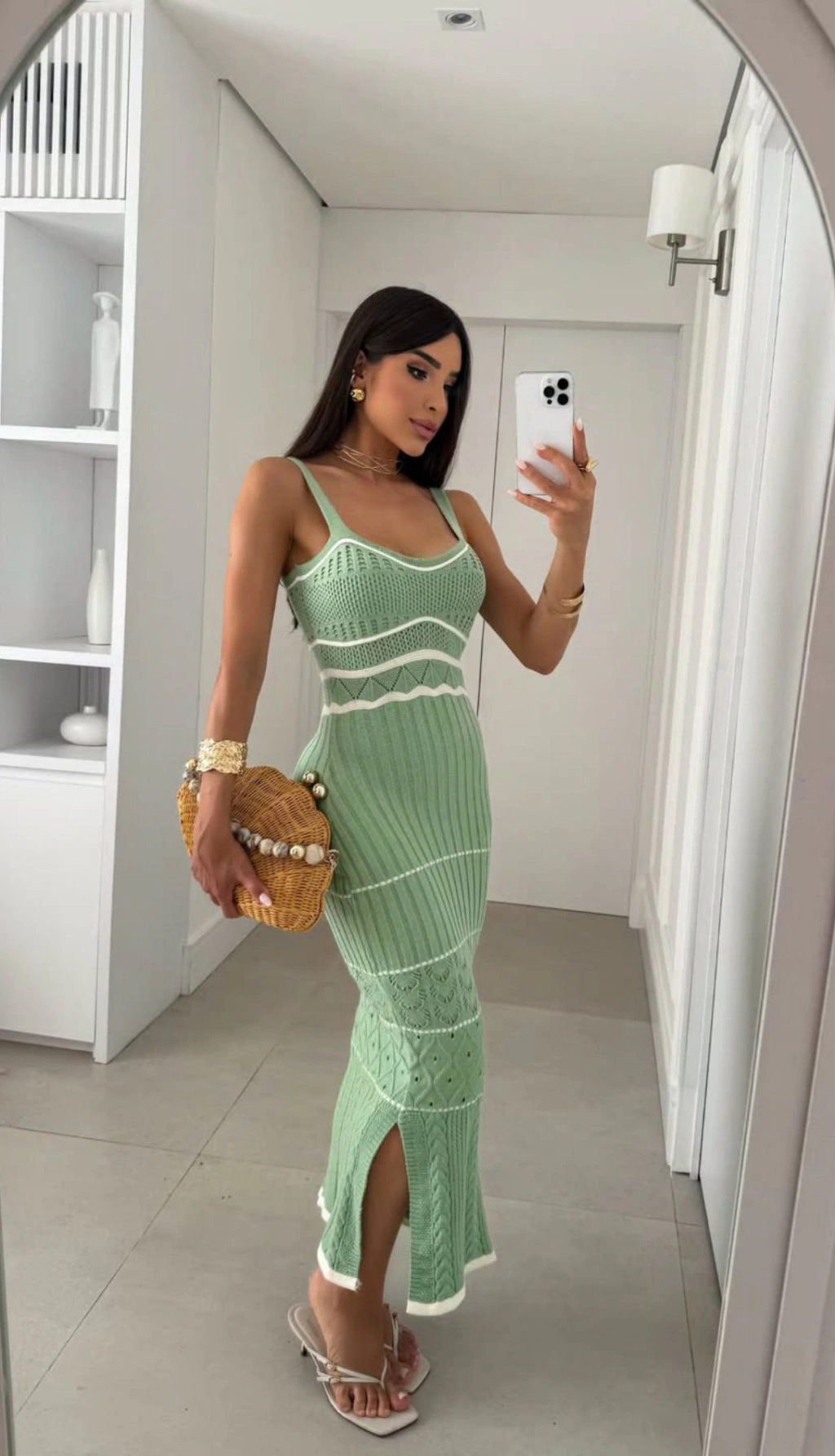 Vestido midi ajustado ao corpo, confeccionado em tricô com elasticidade que valoriza as curvas. Modelo justo ao corpo, com as costas fechada, trazendo um toque sofisticado. Peça elegante e versátil, perfeita para produções noturnas ou eventos especiais.