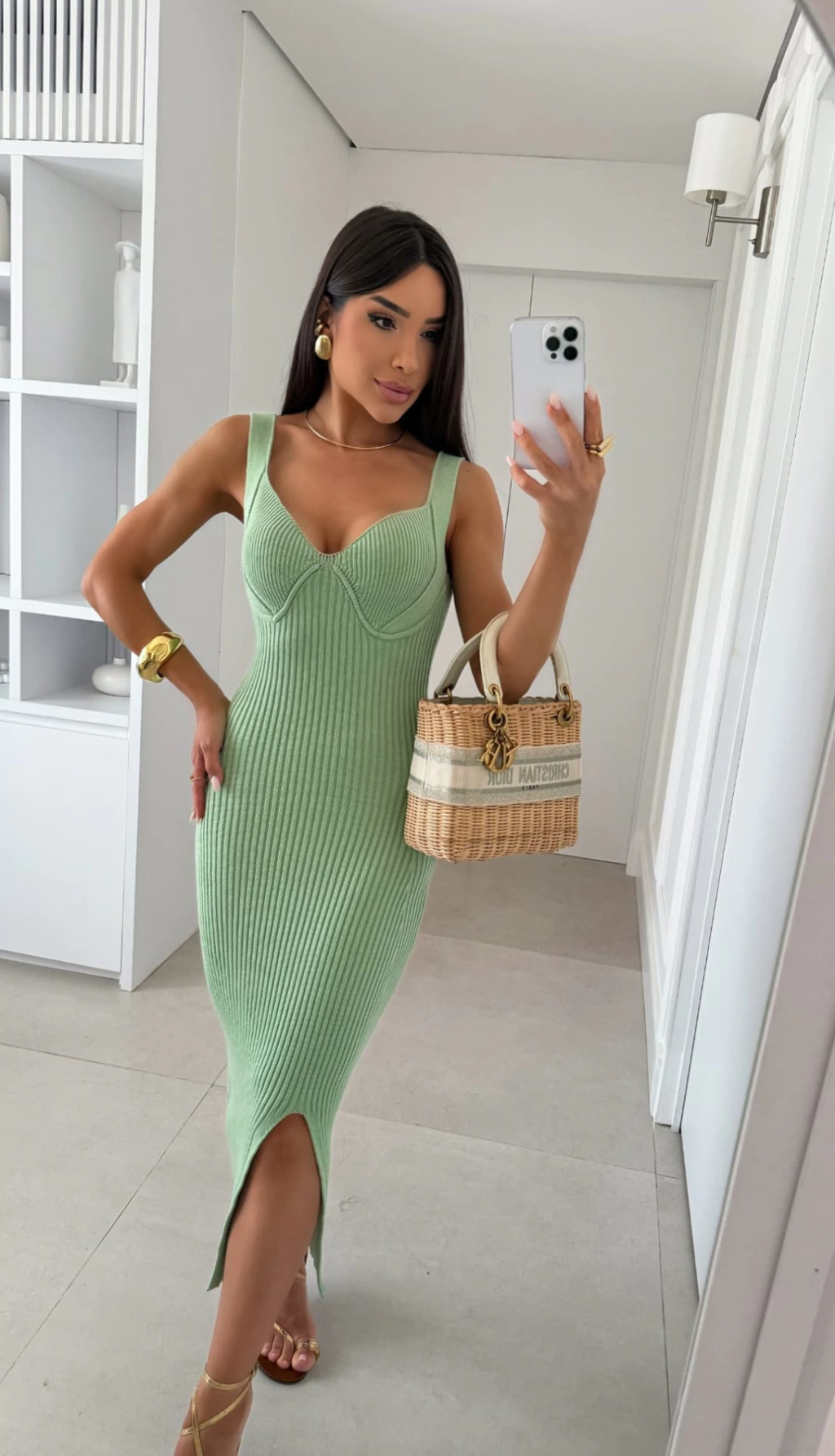 Conheça o Vestido Nápole, um vestido midi modal que exala elegância e estilo. Com uma fenda lateral ousada, gola halter e alças finas, este vestido destaca sua silhueta de maneira sofisticada. Ideal para ocasiões especiais ou para um look casual chic, sua cor verde traz um toque de modernidade e sofisticação. Transforme seu guarda-roupa com essa peça versátil e apaixonante!